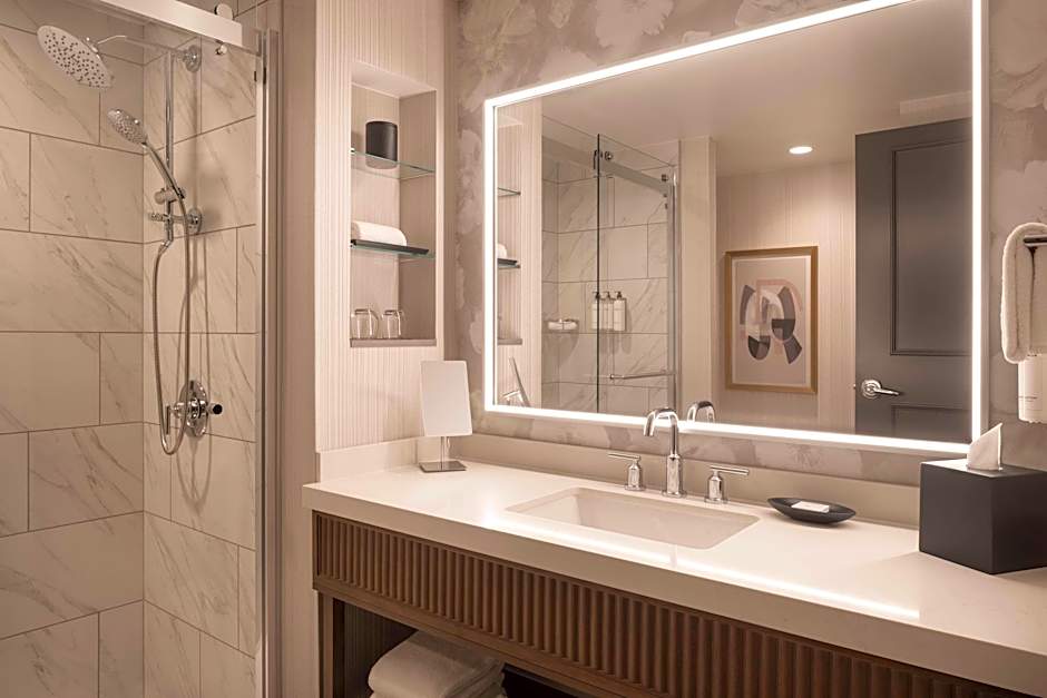This spacious room features access to the Grand Club lounge with complimentary daily breakfast, hors d'oeuvres, and a dedicated concierge. In-room amenities include a 32-inch flat-screen TV, marble bath, and free Portico toiletries.