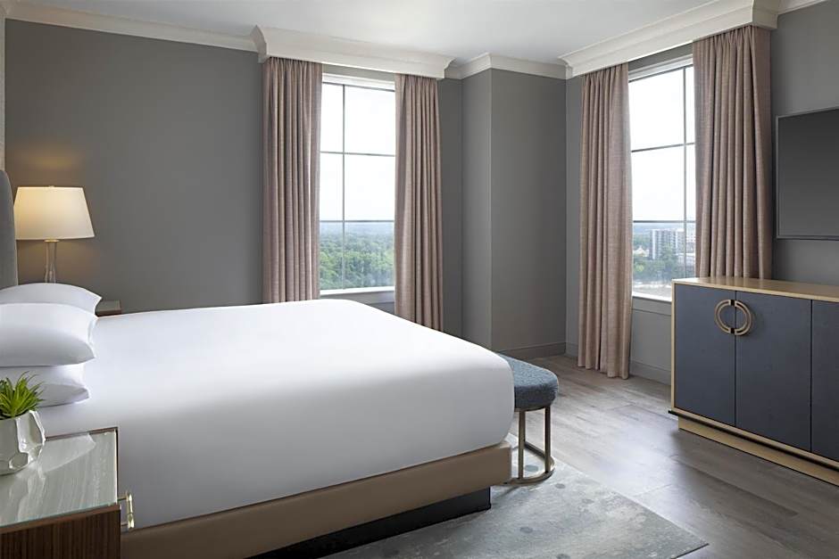 Relax in 400 square feet with one king bed, marble bath with vanity mirror, work area with ergonomic chair, bedside charging station equipped with extra USB ports, and views of Atlanta or our tranquil Japanese Zen garden.