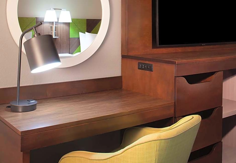 Spacious room with comfortable bed. Great amenities including free breakfast, late afternoon cookies, a coffee/tea bar, gym, and seasonal outdoor pool.