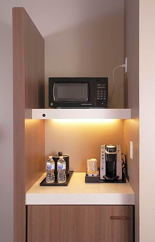 This room features flat screen LCD TV with cable services, digital key lock system, microwave, refrigerator, Keurig coffee machine, built-in-wall blinds, and king bed.