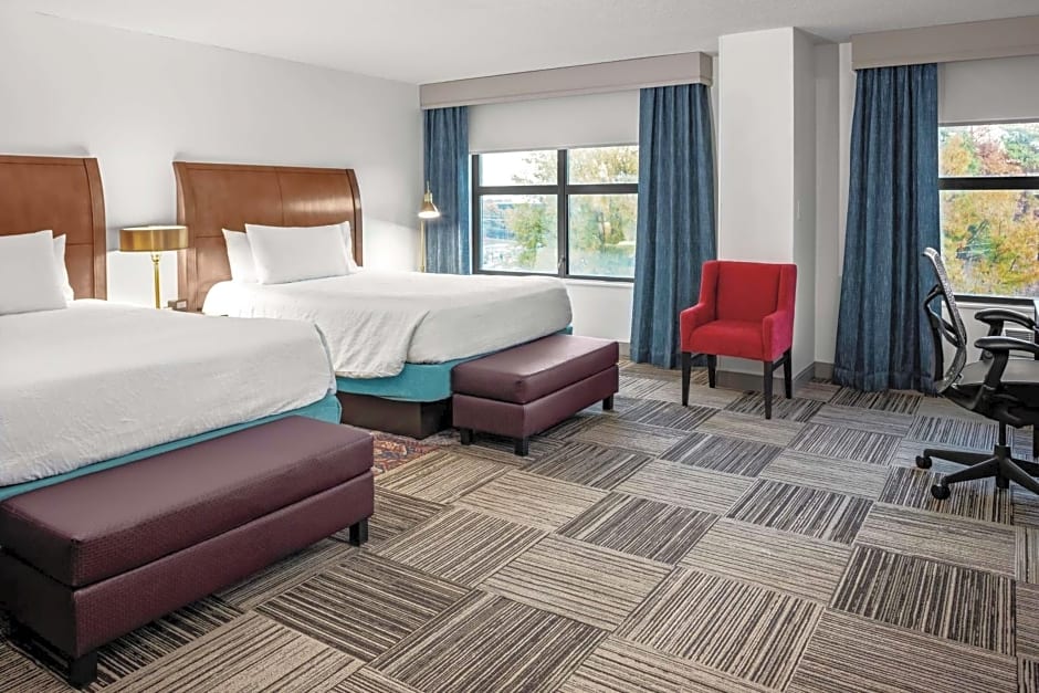 The Hilton Garden Inn Atlanta Perimeter Center offers a variety of rooms including Queen Rooms with Two Queen Beds, King Rooms with Sofa Bed, King Rooms with Bath Tub - Disability Access, Queen Room Junior Conference Suites, Queen Rooms with Two Queen Beds - Hearing Accessible, and King Rooms - Hearing Accessible. All rooms are non-smoking and have a room size of either 312 sqft or 205 sqft. Occupancy ranges from 2 adults and 1 child to 4 adults and 3 children. Bed sizes include Queen and King beds, with some rooms also having a sofa bed.