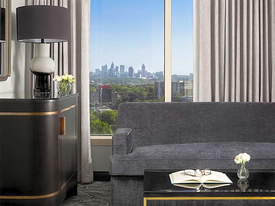 This spacious presidential suite features hardwood floors, a fireplace, and a view of the Atlanta skyline. A separate living and dining area is included as well as 2 65-inch flat-screen TVs and a private bathroom with a spa bath and rainfall shower head.