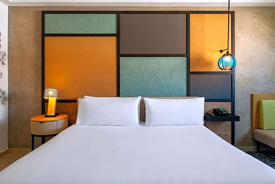 The hotel offers Deluxe Quadruple Rooms and Quadruple Rooms, both non-smoking. The Deluxe Quadruple Rooms have 2 double beds and can accommodate up to 4 adults and 3 children. The Quadruple Rooms also have 2 double beds and can accommodate the same number of guests. The hotel also has Deluxe King Rooms and King Rooms with roll-in showers, both non-smoking, with 1 king bed and accommodating up to 2 adults and 1 child. All rooms have a size of 205 sqft.