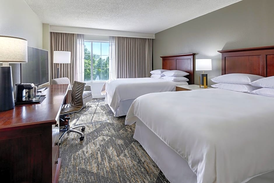 At Sheraton Atlanta Perimeter North, the hotel offers guest rooms with either 2 Queen beds or 1 King bed. The rooms are non-smoking and can accommodate up to 4 adults and 3 children. The 1 Bedroom Suite also has a King size bed and can accommodate the same number of guests, with a larger room size of 420 sqft.