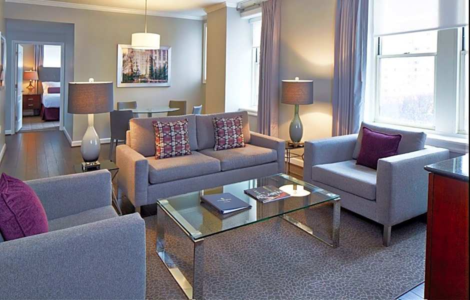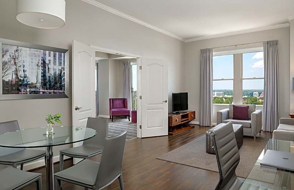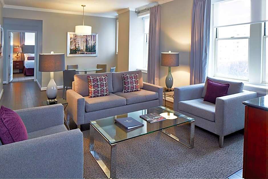 This spacious suite includes a separate bedroom, separate living room, and dining area. Extras include a large closet, flat-screen TV, and private bathroom with eco-friendly toiletries.