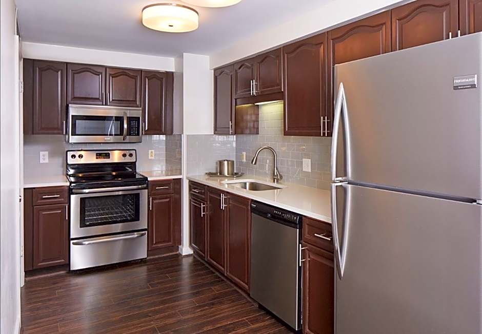 This spacious suite consists of 1 living room, 1 separate bedroom and 1 bathroom with a shower and free toiletries. Meals can be prepared in the well-fitted kitchen, which is equipped with a stovetop, a refrigerator, a dishwasher and an oven. The air-conditioned suite provides a flat-screen TV with cable channels, a washing machine, a tea and coffee maker, a seating area as well as city views. The unit offers 1 bed.