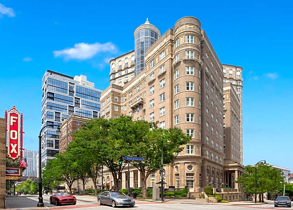 Guests at The Georgian Terrace can spend their time enjoying a range of leisure amenities. They can relax by the outdoor swimming pool and make use of the provided beach chairs and loungers. For drinks and socializing, the hotel offers a bar called Proof and Provision, which has a traditional ambiance and serves American cuisine. Guests can also maintain their fitness routine in the fitness center or on the sun deck.