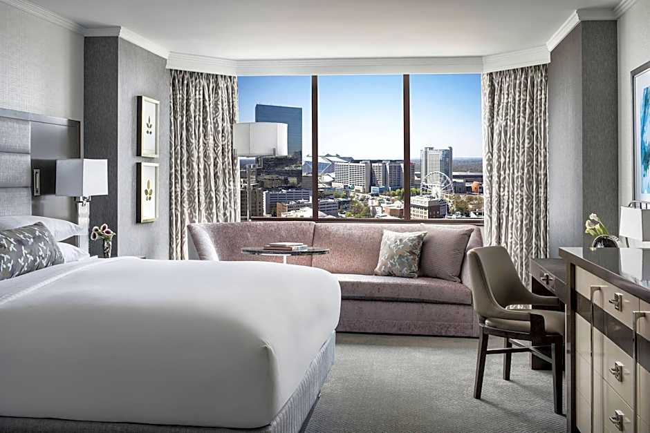 Featuring a view of downtown Atlanta, this room includes a 55-inch flat-screen HDTV and a private bathroom with a granite vanity, marble bath and rainfall showerhead. Plush bathrobes and slippers are also provided.