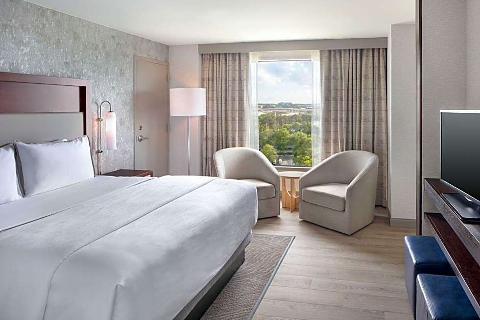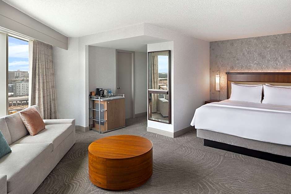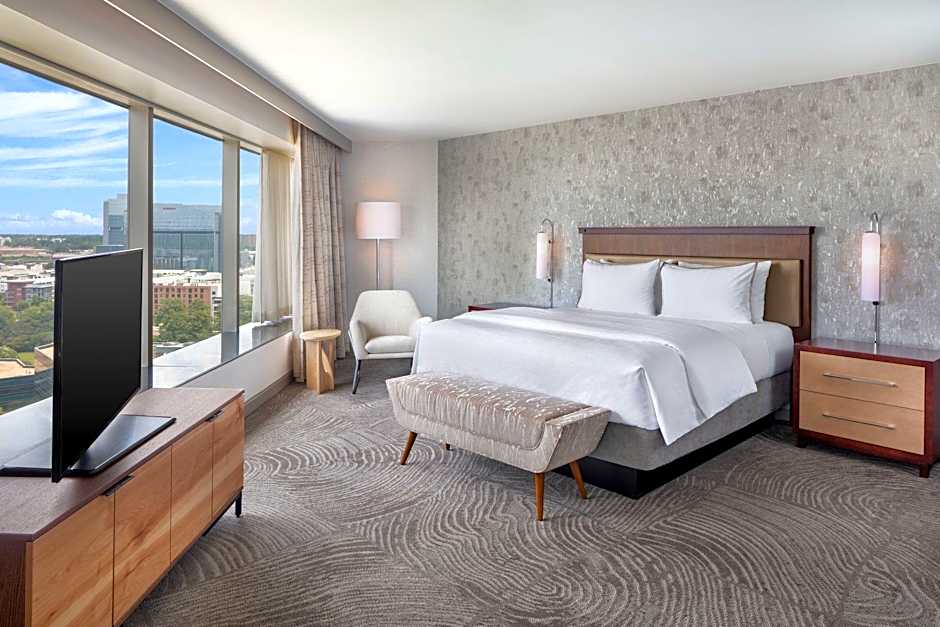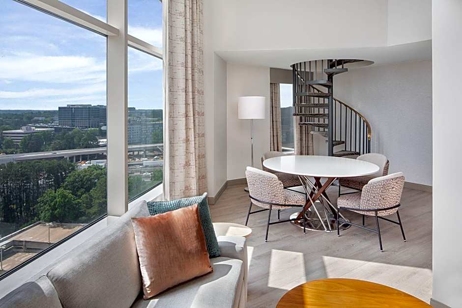 The hotel was conveniently located to everything we wanted to do and the hotel provides a shuttle to anywhere within a two miles radius to the hotel. The grounds around the hotel are beautiful. There is a lake that you can walk around. We were also able to see the Sandy Springs fireworks show from our 18th floor room.