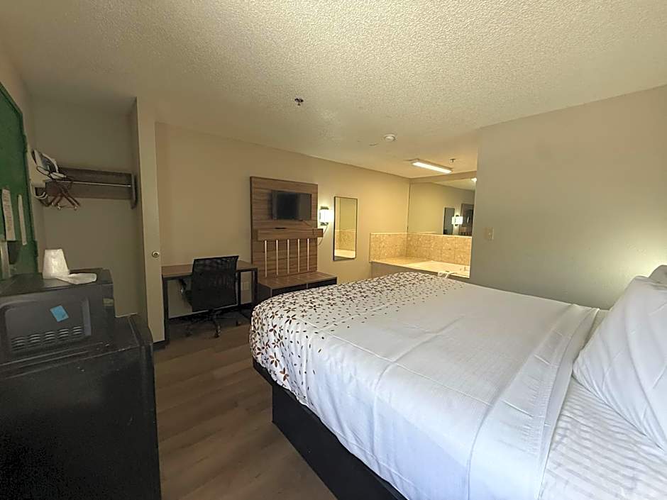The suite's kitchenette, which features a refrigerator and a microwave, is available for cooking and storing food. This suite has air conditioning, heating and a TV with cable channels.