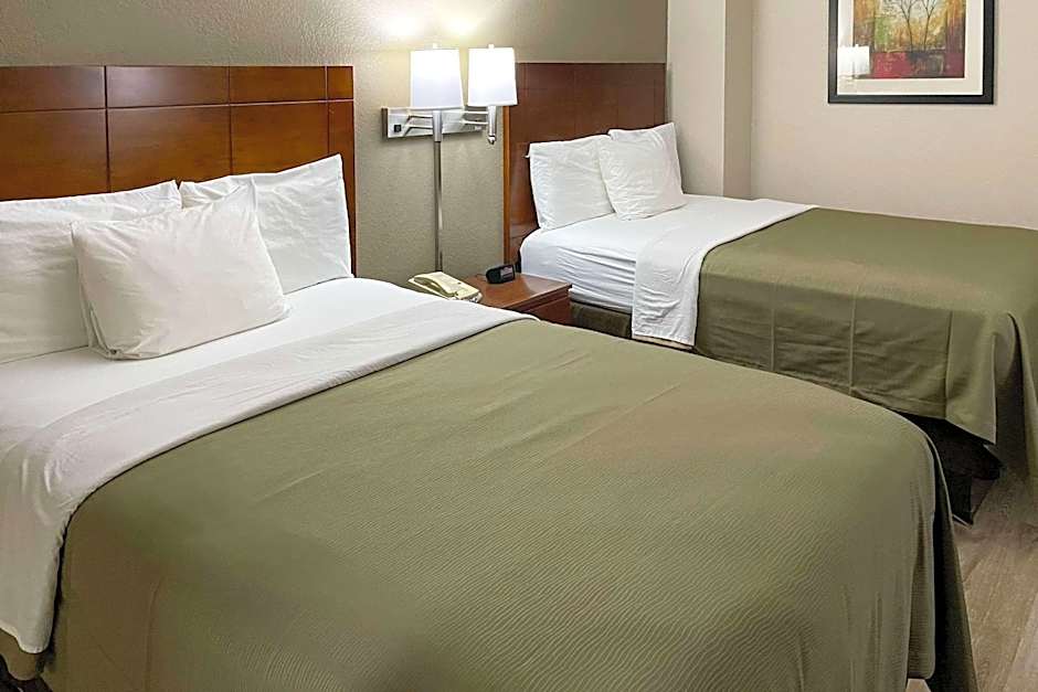 A range of room configurations is available, including options with two queen beds, a king bed, or a single queen bed.