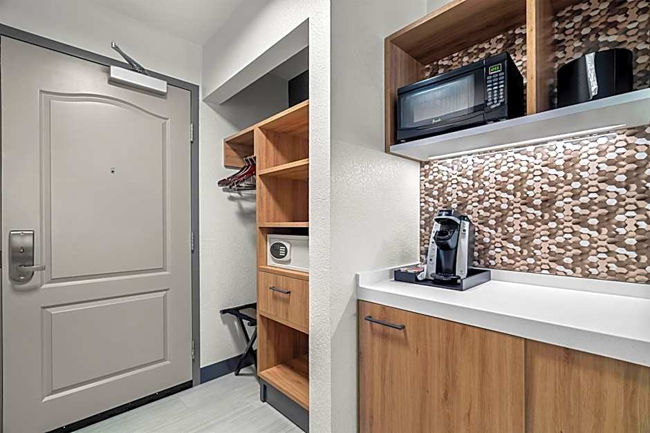 This room features a microwave, refrigerator, and coffee-making facilities.