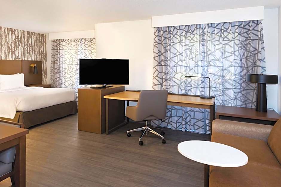 The Residence Inn Columbus offers two types of rooms. The One-Bedroom Queen Suite is a spacious suite with a size of 495 sqft. It can accommodate 3 adults and 2 children with 1 Queen size bed and 1 Sofa Bed. Smoking is not allowed in this room. The Queen Studio with Sofa Bed is a studio room of the same size and also accommodates 3 adults and 2 children. It has 1 Queen size bed and smoking is not allowed.
