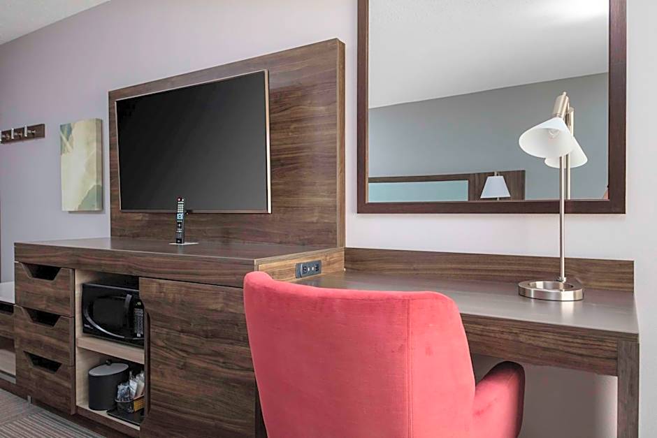 HDTV, work space, microwave, refrigerator, free WiFi This spacious room features two queen-sized beds and an HDTV. Refresh in the bathroom a WaterPik showerhead and fluffy towels. The curved shower rod provides extra space and light when showering. Work in comfort at the large desk and stay connected with free WiFi access. Additional amenities include a handy coffeemaker, microwave and refrigerator.