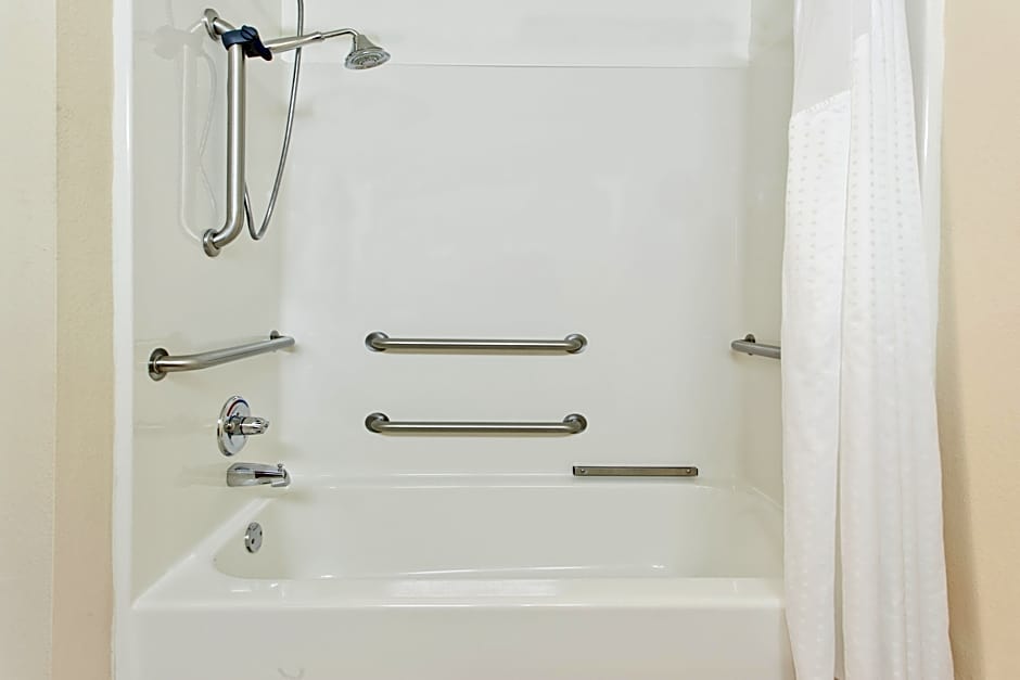 1 Kng Standard Comm Mobil Accessible Tub is 301 square feet and includes a king-size bed 150-183 width and has a Disability-friendly bathroom.