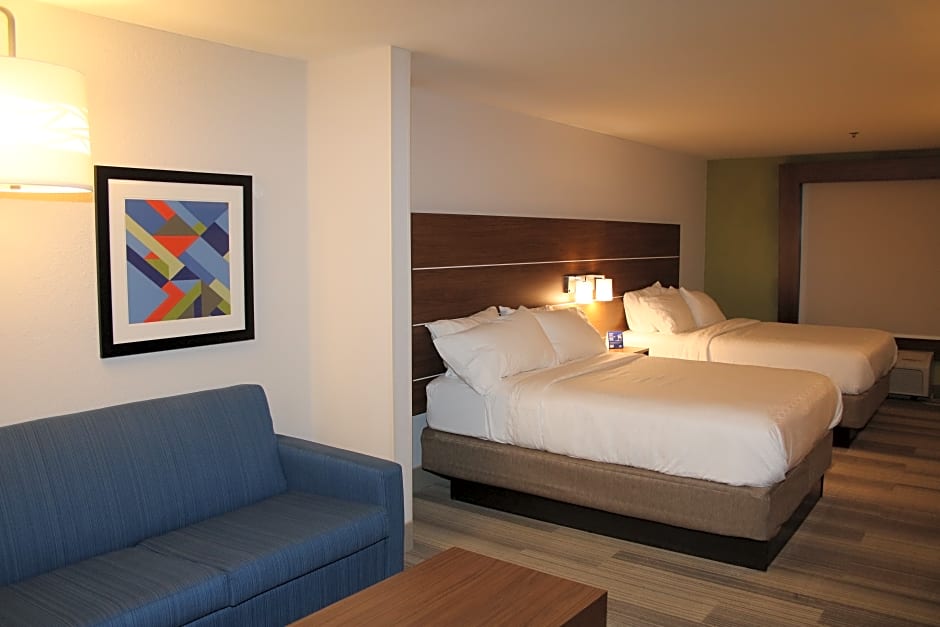 The Holiday Inn Express offers a variety of rooms with different bed configurations, including King Rooms with one king-sized bed, Queen Rooms with two queen-sized beds, and Standard Rooms with one double bed. The hotel also has suites available, including King Suites with one king-sized bed and a sofa bed, and Queen Suites with two queen-sized beds and a sofa bed. All rooms are non-smoking and range in size from 301 to 355 square feet. The rooms can accommodate between 2 and 6 adults, and between 1 and 4 children.