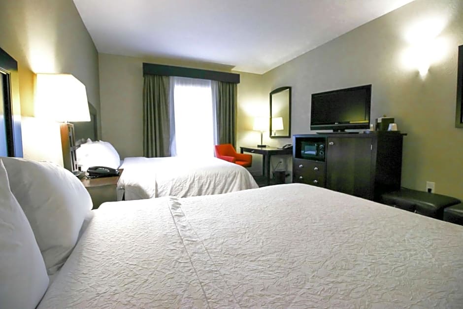 Any corresponding photo may not reflect the specific accessible room type or room feature. This hearing accessible, nonsmoking room features two queen sized bed(s). The room also has a visual alarm and notification devices for the doorbell or door knock and incoming phone calls. The room features our luxurious Clean and Fresh Hampton Bed, comfortable soft seating, microwave, refrigerator, a HDTV, and easy to operate alarm clock/radio. In the bath you will enjoy a WaterPik shower head and curved shower rod. The free high speed internet access will help you stay connected while on the road. If you prefer not to work at the desk, you can use the convenient lapdesk instead. You'll also enjoy the convenience of having a coffee maker with tea service and iron/ironing board in your room.