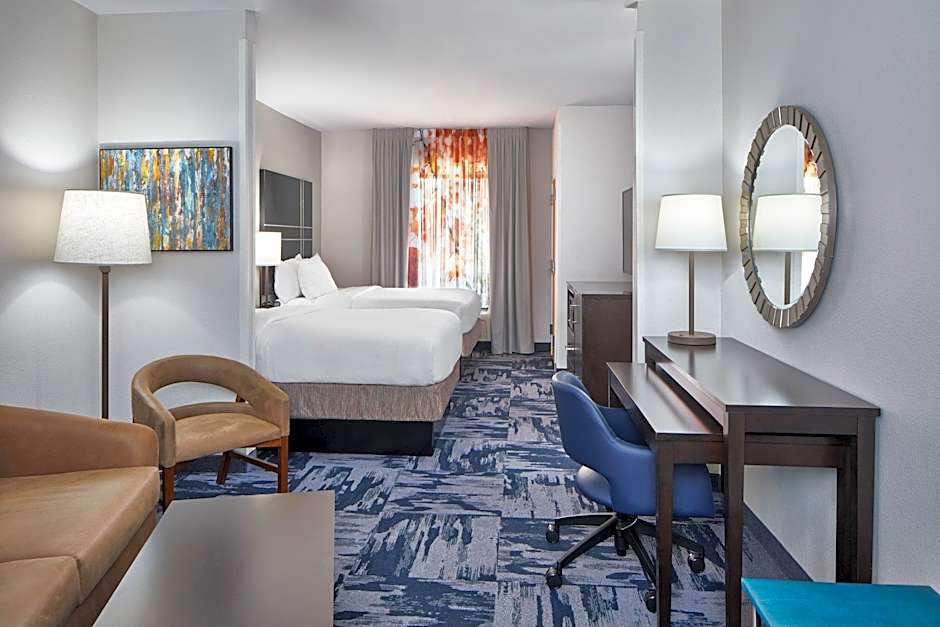 At Fairfield Inn & Suites by Marriott Gainesville, the hotel offers two types of rooms. The Double Studio with Two Double Beds is a double room with a room size of 248 sqft. Smoking is not allowed in this room, and it can accommodate up to 5 adults. There is also the King Studio, which is a double room with the same room size. Smoking is also not allowed in this room, and it can accommodate up to 3 adults, with a King size bed and a sofa bed.