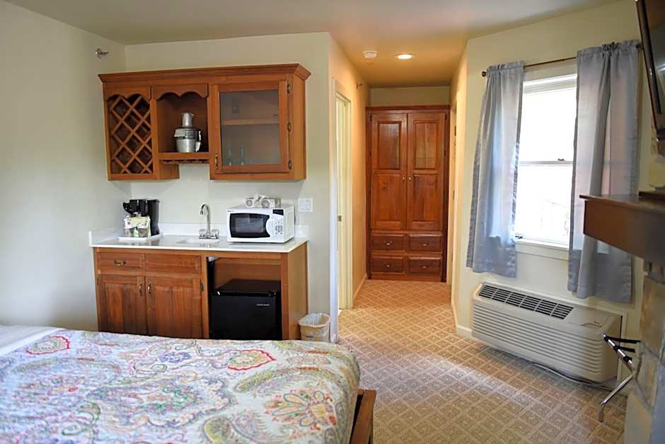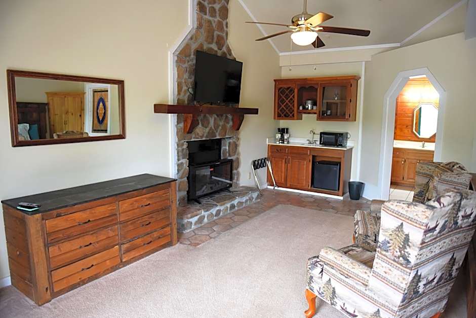 This suite is located in the main building and has its own living room with a sofa bed, small refrigerator, and microwave. It also features a flat-screen cable TV and a fireplace in addition to the private patio.