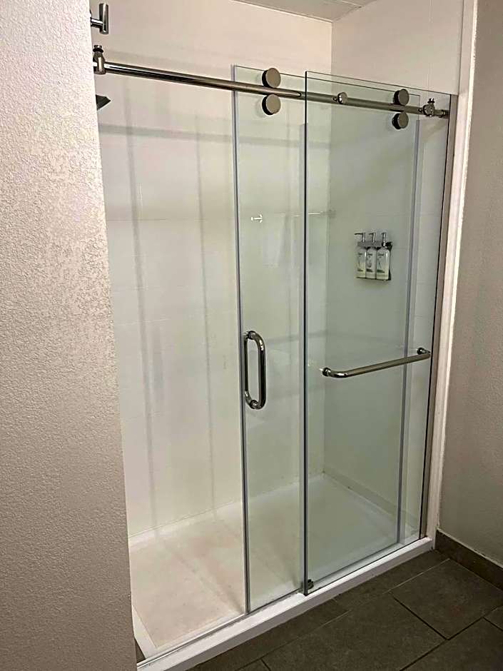 The rooms was spacious cleaned & well planned. My favorite feature was a full length mirror with a ledge & outlet. Great place to finish up hair/ makeup when sharing a bathroom. Nice free breakfast also. The walk-in shower was a nice feature as well.