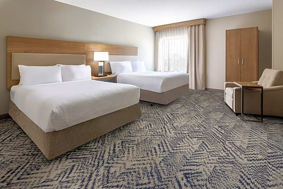 Room options span several layouts. Studio, King brings a single king bed to a compact floor plan for two, while Studio, 2 Queen offers two queen beds for a small group. For more space, Studio Suite, King couples a king bed with a separate living area, and Studio Suite, 2 Queen provides two queens and extra room. Suite, 1 Bedroom features a king bed with a separate living area, and Premium offers a comfortable double-bed setup for two.