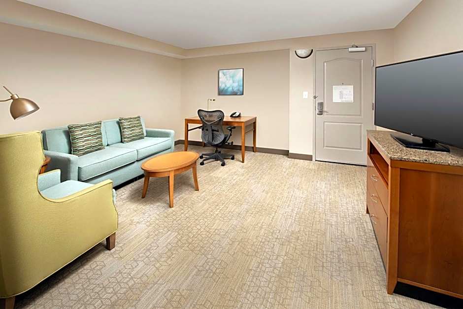 Separate living room, two HDTVs, refrigerator, microwave, sofa bed, complimentary WiFi This spacious two-room suite boasts a range of features, designed to optimize comfort and convenience. Unwind in the separate living room, which offers a 37-inch HDTV, a sofa bed and a table. The private bedroom features a king Garden Sleep System bed and another HDTV. Catch up on work at the large desk with ergonomic chair and stay connected with complimentary WiFi. Other amenities include a Keurig® coffeemaker, mini-refrigerator and microwave.