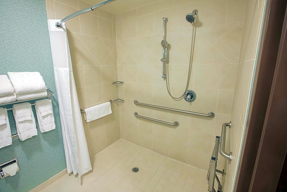 This mobility accessible standard room features two queen-sized beds, and a roll-in shower. Relax in a warm and welcoming accessible guest room with a roll-in in shower with attached accessible seating, lowered vanity in bathroom, and lowered shelf in closet. The ergonomic chair is good for your back and better for work. Enjoy your favorite television show on our 42-inch HDTV. There's also a microwave, refrigerator and coffee/tea maker to help you feel at home. And for conducting business, our rooms ensure your productivity thanks to the spacious work desk, two telephones with dataport and voice mail and complimentary WiFi access. Any corresponding photo may not reflect the specific accessible room type or room feature.