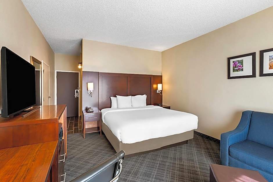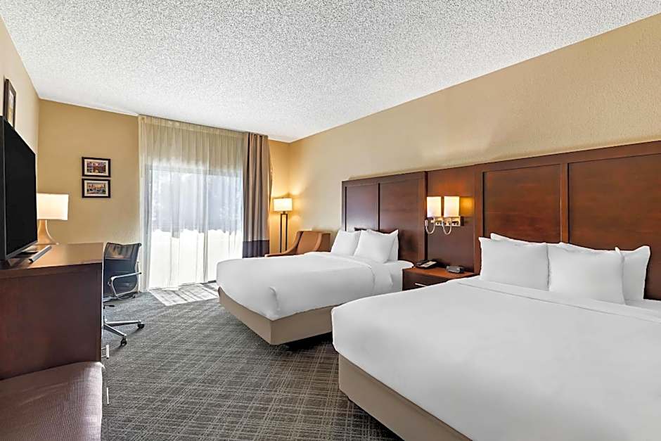 The Comfort Inn Roswell-Dunwoody offers a variety of room types including Queen Rooms with Two Queen Beds (accessible/non-smoking), King Rooms (disability access/non-smoking), and Suites with Two Double Beds (non-smoking). All rooms are non-smoking and have different bed sizes depending on the room type. The rooms can accommodate varying numbers of adults and children.
