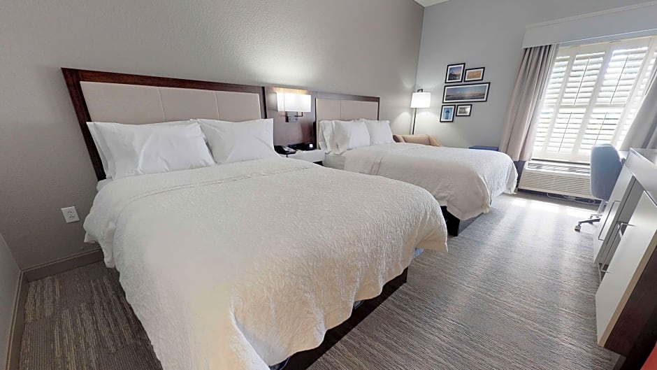 CD HDTV, work desk, coffeemaker, free WiFi This bright, comfortable room features two clean and fresh Hampton beds® and an LCD TV with HD channels. Work in comfort at the large desk with free WiFi access. Refresh in the bathroom with plush towels and a shower featuring a curved shower rod for added space and light. The room also includes a coffeemaker - perfect for brewing that first coffee of the day. For your Comfort Curved Shower Rod Easy to Set Alarm Clock Radio Waterpik(R) Showerhead For your Convenience Coffee Maker Complimentary Hot Breakfast High Speed Internet-No Charge Iron Iron/Ironing Board