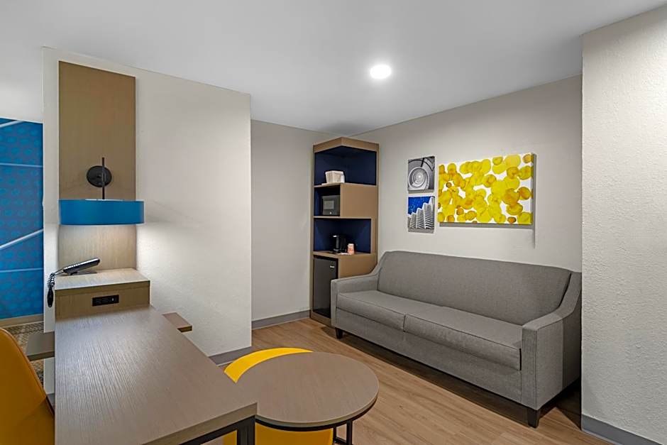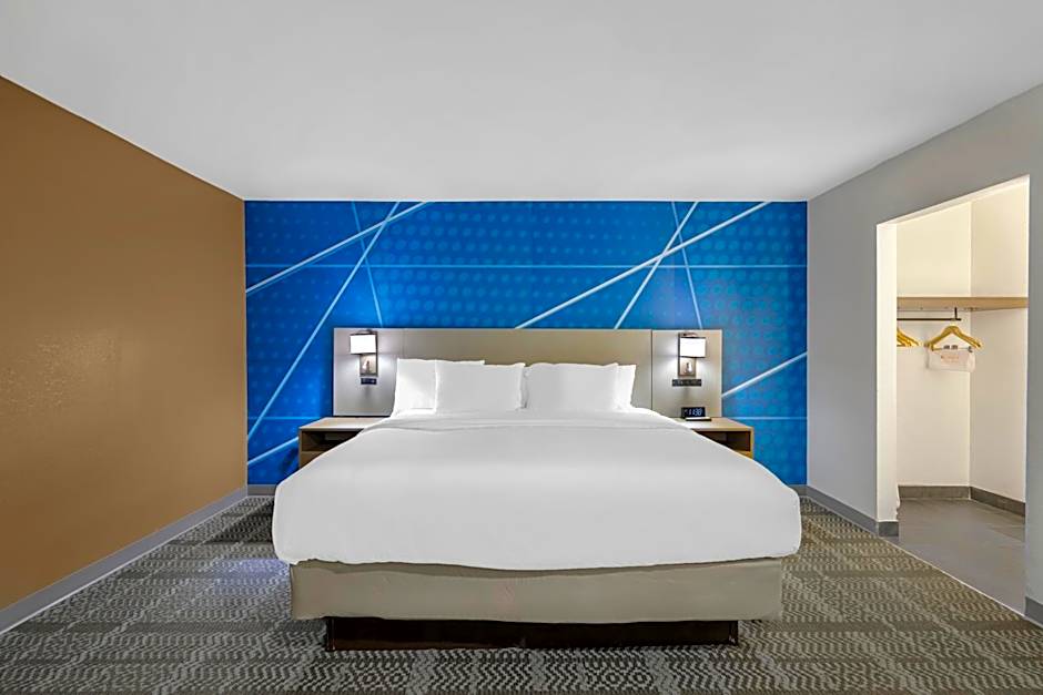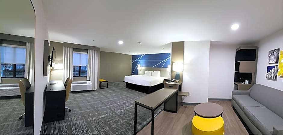 1 King Bed Efficiency Suite Nonsmoking Accessible is 269 square feet and includes a king-size bed 150-183 width and is Wheelchair-accessible.