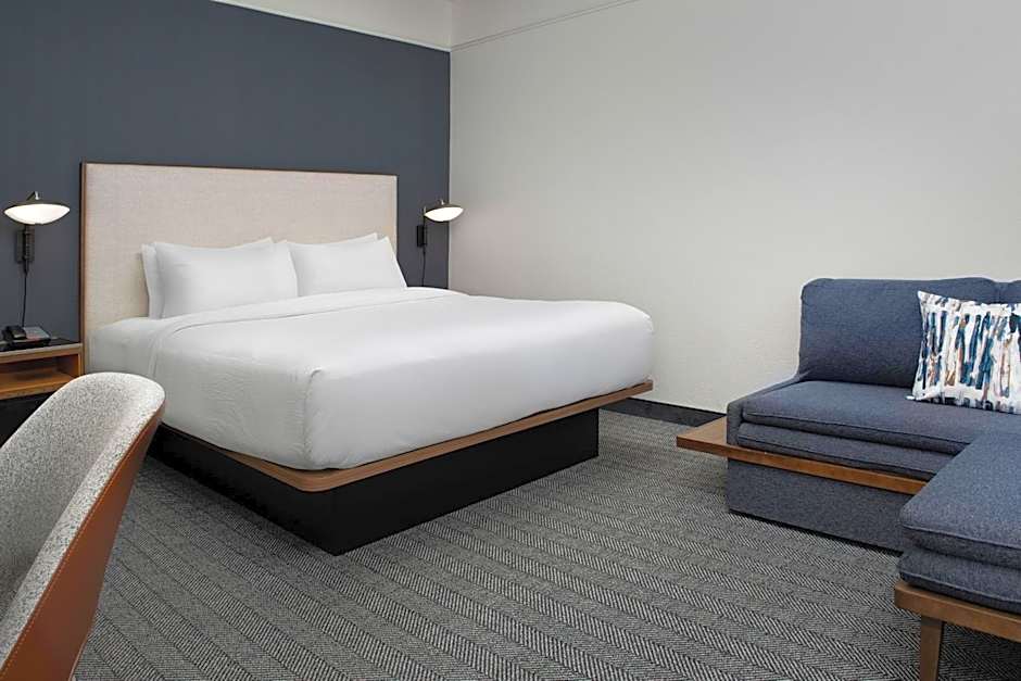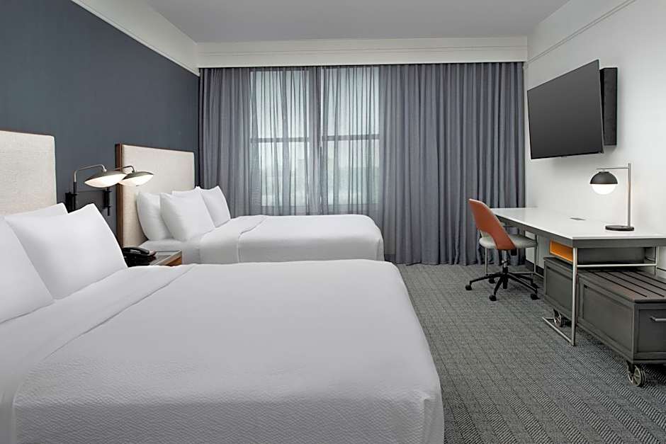 The Courtyard by Marriott Savannah Downtown - Historic District offers a variety of rooms including Queen Rooms with Two Queen Beds, King Rooms with Sofa Beds, and Suites with a King bed and Sofa bed. All rooms are non-smoking and can accommodate up to 4 adults and 3 children. The room sizes range from 301 to 398 square feet.