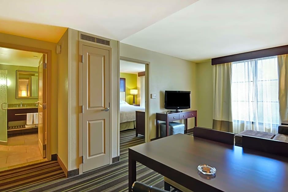 Complimentary WiFi, living room, sofa bed, desk & chair, refrigerator, microwave, two TVs. Enjoy your stay in this stylish two-room suite, complete with one king-sized bed and a separate living room. The furnishings include two 32-inch TVs, a sofa bed, armchair and work desk with ergonomic chair. Refresh in the elegant bathroom featuring a granite vanity and walk-in shower. There is also complimentary WiFi and a wet bar with refrigerator and microwave to store and prepare your own meals.