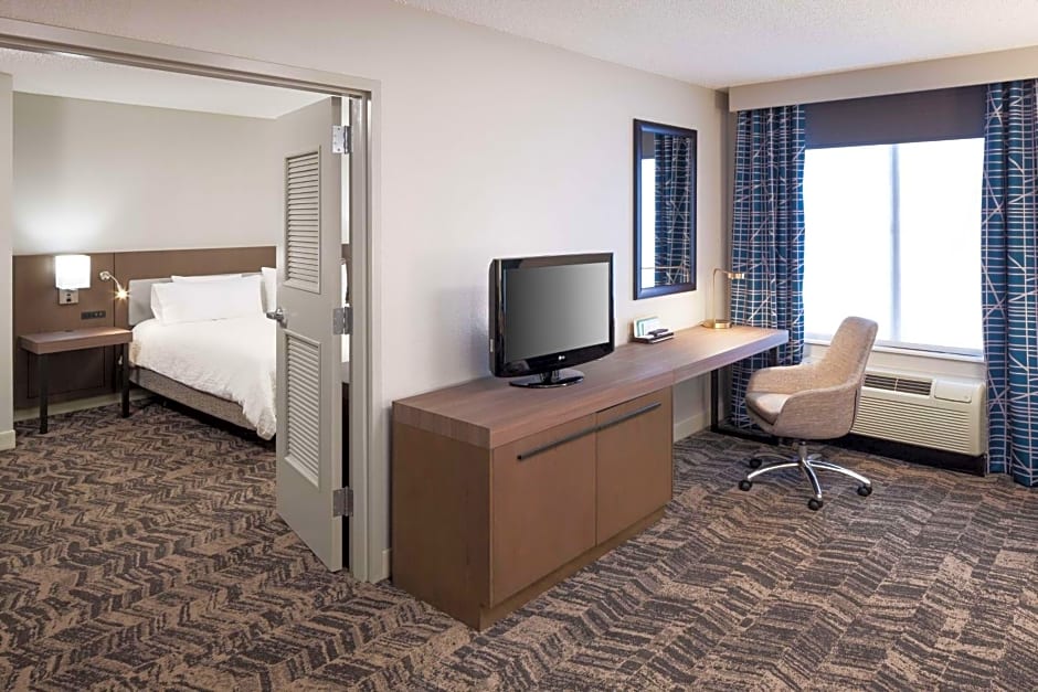Complimentary WiFi, separate living area, one and a half baths, garden tub, HDTV, sofa bed This elegant one-bedroom suite provides a separate living area, with a sofa bed and features one king-sized Garden Sleep System® bed. Work at the spacious desk with ergonomic chair, stay connected with complimentary WiFi access and use the remote printing service. Relax in the armchair with ottoman and watch a movie on the HDTV. There is one full bathroom with a shower and a garden tub and an additional half bath. Other thoughtful amenities include a microwave, refrigerator, a Keurig® coffeemaker and an alarm clock radio with MP3 connection.