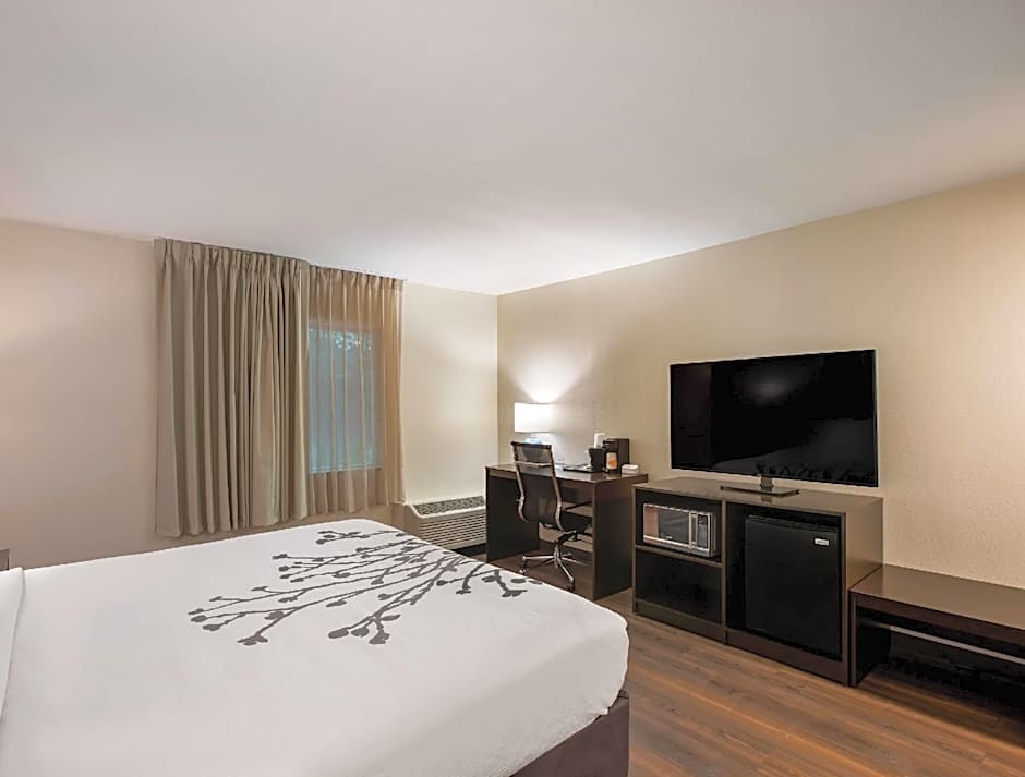 This nonsmoking room features a microwave, 40-inch flat-screen cable TV with the HBO movie channel, and work desk. The private bathroom has hand-rails.