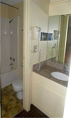 The room was very dirty the ceiling was missing above the sink the bath tub was nasty like paint in it. The carpet was sticky. The ceiling above the bed looked like there was ketchup or something squirted on it. The bed was very broke down. Overall it was just plain nasty.