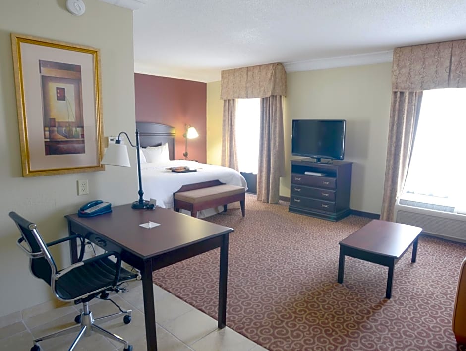 Sofa bed, desk, HDTV, free WiFi Relax in this king studio suite with a clean and fresh Hampton bed®. Sink into the sofa bed and watch movies on the HDTV. Catch up with work at the desk with ergonomic chair. Surf the web with free WiFi. Refresh your senses in the bathroom, complete with a shower and plush towels. Enjoy the convenience of having a coffeemaker in the room.