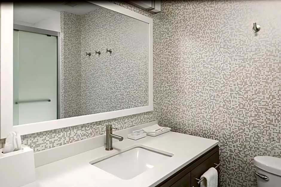 The hotel offers a variety of room types including Queen Studio with Two Queen Beds, King Studio, King Studio Suite, One-Bedroom King Suite, King Studio with Roll-In Shower, and Queen Studio with Two Queen Beds. All rooms are non-smoking and can accommodate up to 4 adults. Bed sizes vary, with options including Queen size beds, King size beds, and sofa beds.