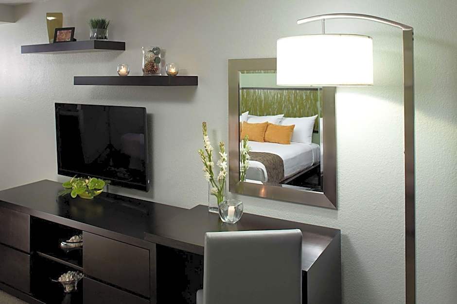 Boasting a panoramic view of the city, this air-conditioned room includes a spacious balcony, and a flat-screen TV, DVD Movies and Rentals to DVD players. A kitchenette with granite countertops, mini refrigerator and a 2-burner stove top is also included.