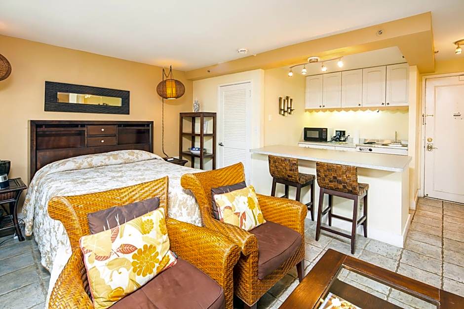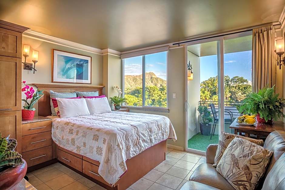 Celebrate beautiful Diamond Head and ocean views from your deluxe haven with distinctive island décor. The best part of your day will be unwinding on your spacious sundeck. Other amenities include a kitchenette, air conditioning, cable TV, and WiFi.