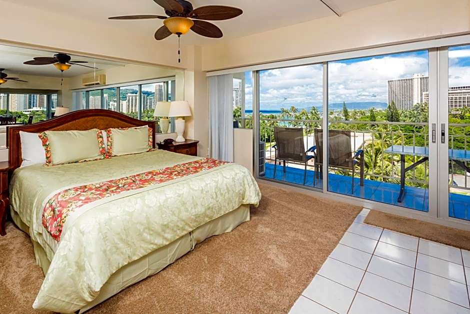 Featuring views of Waikiki Beach and the Pacific Ocean, this studio also offers a kitchenette.