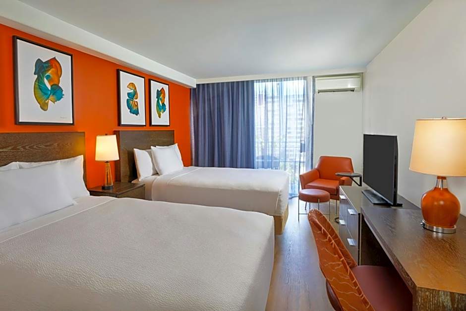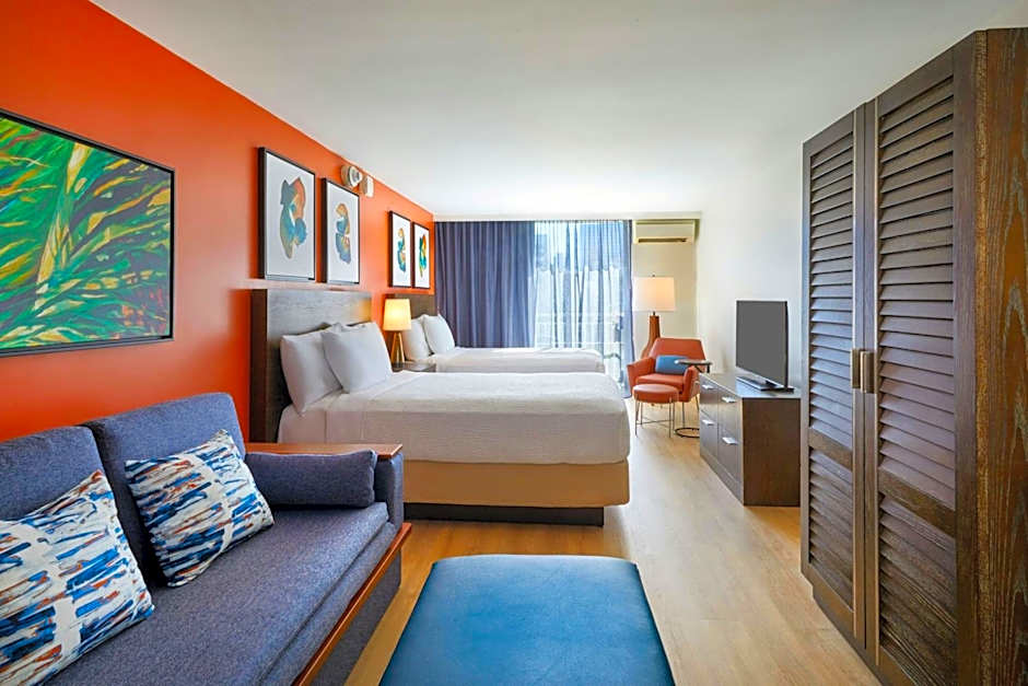 At Courtyard by Marriott Waikiki Beach, guests can choose from a variety of rooms including the Deluxe Queen Room with a Queen size bed, the King or Queen Room with a King size bed, and the Deluxe Double Room with Two Double Beds. The hotel also offers several suite options such as the Junior Suite with Sofa Bed and Balcony, the Corner Queen Suite with Sofa Bed, and the One-Bedroom Suite. All rooms are non-smoking and have different occupancy capacities ranging from 2 to 5 adults and 1 to 4 children.