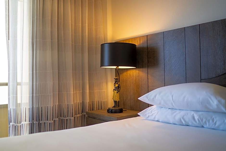 After a day of exploring Honolulu, cool off and unwind in one of the two outdoor swimming pools at the Embassy Suites by Hilton Waikiki Beach Walk. The rooftop pool offers breathtaking views while you take a dip, and the shallow end is perfect for wading and relaxing. If you're traveling without children and looking for a quieter experience, the adults-only pool is the ideal spot for you. Lounge chairs are available poolside, allowing you to soak up the sun and enjoy the beautiful Hawaiian weather.