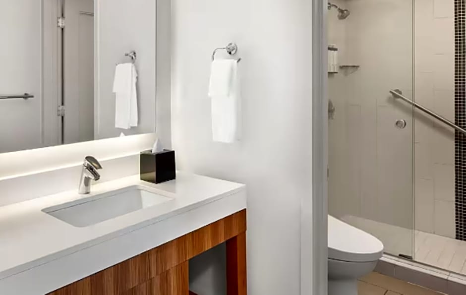 Featuring city views, this ADA room offers air conditioning, a flat-screen TV with cable channels, a refrigerator, a coffee machine, a desk, an in room safety deposit box, and an private bathroom with free toiletries.