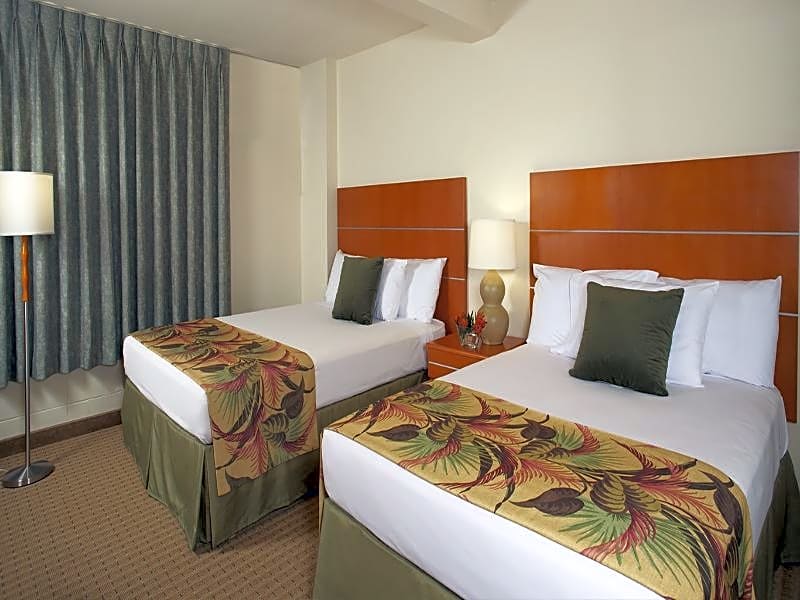 Enjoy the best value at the Pearl Hotel Waikiki in this approximately 451-square-foot room featuring 1 queen and 1 double bed, or 1 king bed. Relax in paradise while enjoying neighborhood views of Waikiki from your private balcony. Our unbeatable location and this spacious room set you up for a delightful time on Oahu