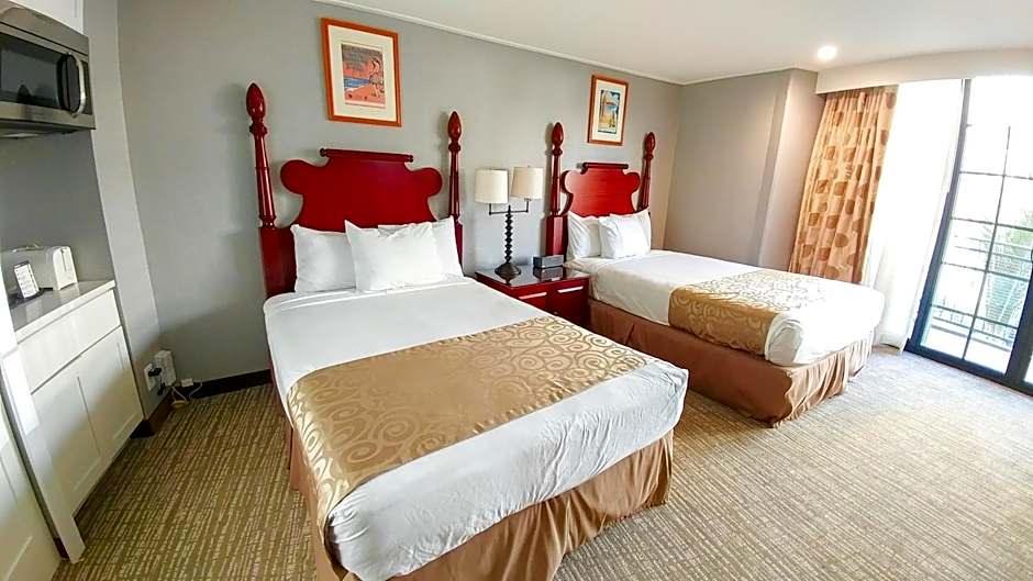 This spacious family suite features a living room with kitchenette and two bathrooms. Free WiFi, a 50-inch Smart TV, Keurig coffee maker, toaster, I-Home clock radio, refrigerator, microwave, work desk, safe and air conditioning are included.