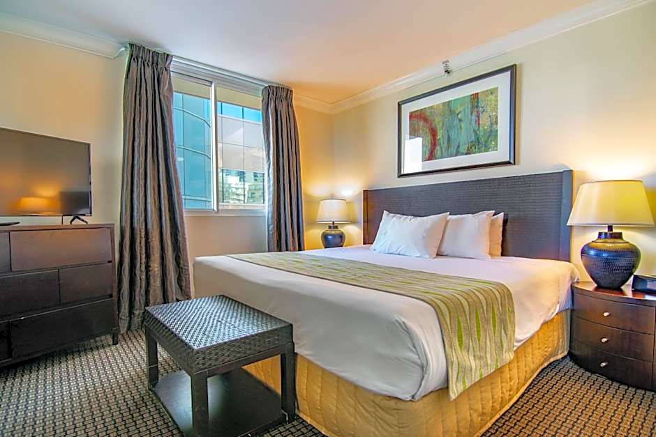 Featuring city views, this suite offers a fully equipped kitchen with a dishwasher, a stove top, a microwave oven, a refrigerator, a coffee machine, a toaster, cookware, and tableware. this unit also includes a TV with cable channels and pay-per-view, air conditioning, an alarm clock radio, a in-room safety deposit box, ironing facilities, and an private bathroom with a hairdryer.