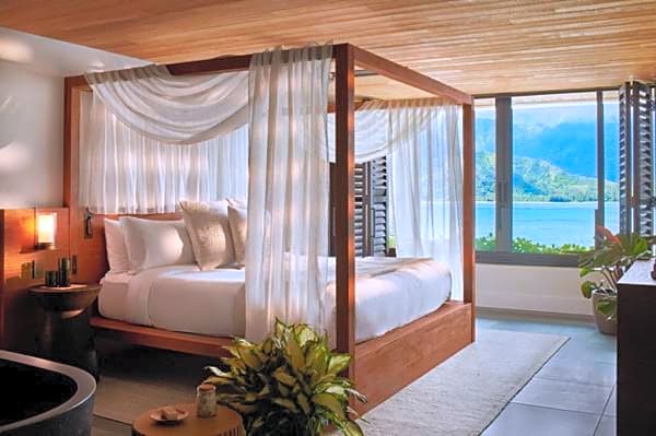 1 Hotel Hanalei Bay is a five-star beachfront resort in Princeville, Hawaii, located at 5520 Ka Haku Road, just 1,2mi from the city center. With mountain and garden views and 220 reviews, rates start from $916 per night for a tropical island escape.