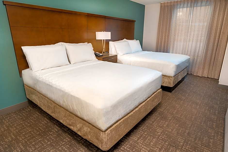 The Staybridge Suites Coeur d'Alene offers a variety of room types. These include Two-Bedroom Suites with one king and two queen beds, One-Bedroom Queen Rooms with two queen beds, Two-Bedroom Suites, King Studio Suites, One-Bedroom Suites with two queen beds, Standard Rooms, and One-Bedroom King Suites with accessible roll-in showers. All rooms are non-smoking and have a size of 301 sqft. Occupancy ranges from 2 adults and 1 child to 8 adults and 7 children.