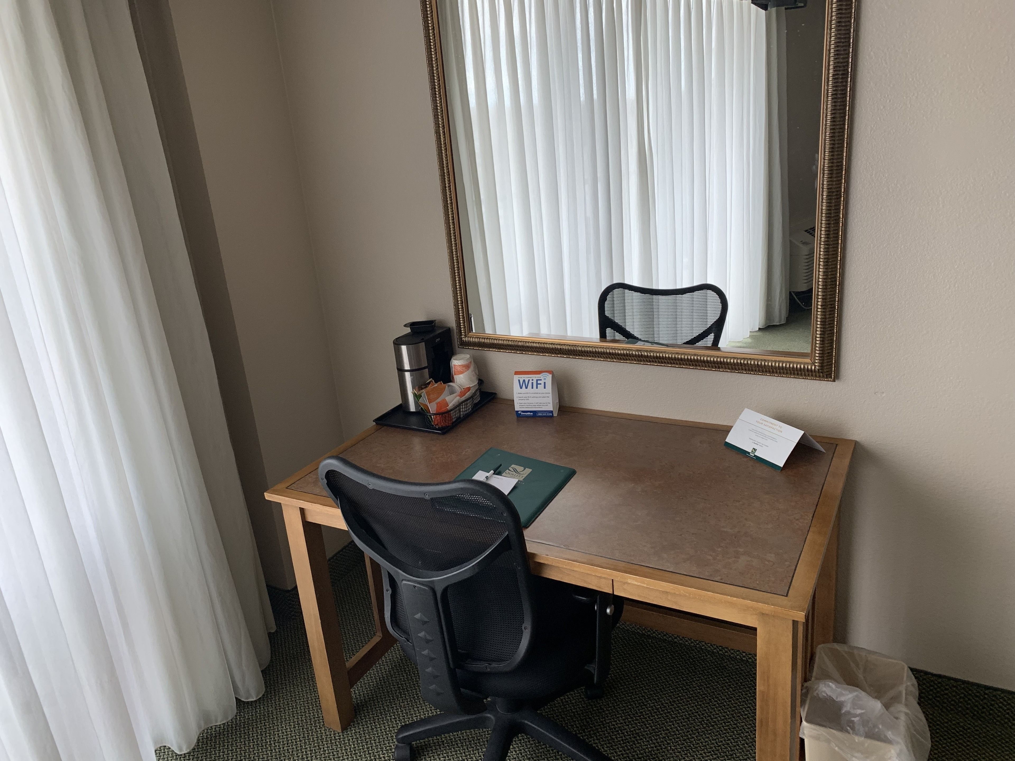 This Comfort Suites is an older property that has been modernized and refreshed with great success. Our enormous room with a view of the falls included a surprisingly elegant bathroom set-up, excellent lighting, a comfortable bed and sofa, a Keurig-like coffee maker and abundant outlets to plug in our devices. We were extremely comfortable. The breakfast was ordinary, but the layout for the breakfast tables was exceptionally spacious and filled with light. The hallways also are well-lit, and navigatioin through the round building is easy. We have stayed at other properties facing the falls. This was the best. It was also a good value for the quality compared to other properties in the same class.