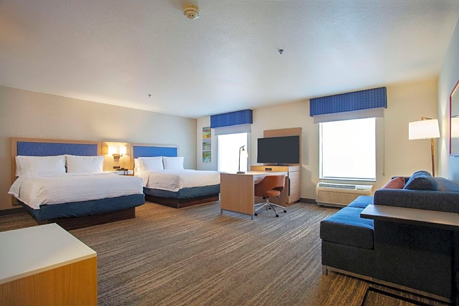 The Hampton Inn & Suites Mountain Home offers a variety of room options. These include non-smoking Queen rooms with two Queen beds that can accommodate 5 adults and 4 children, non-smoking King rooms with one King bed that can accommodate 3 adults and 2 children, as well as non-smoking King studios with a sofa bed that can also accommodate 3 adults and 2 children. All rooms have a room size of 205 sqft. There are also accessible options available for the Queen rooms with two Queen beds.
